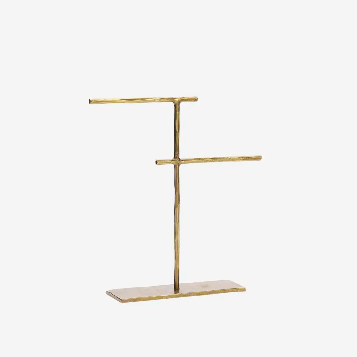 Dieser handgeschmiedete Schmuckständer aus Indien, gefertigt aus strapazierfähigem Eisen mit antikem Messingfinish, präsentiert Schmuckstücke auf wunderschöne Weise. Einzigartig und nachhaltig hergestellt, bietet er eine optimale Aufbewahrungslösung, die Eleganz mit Funktionalität verbindet.