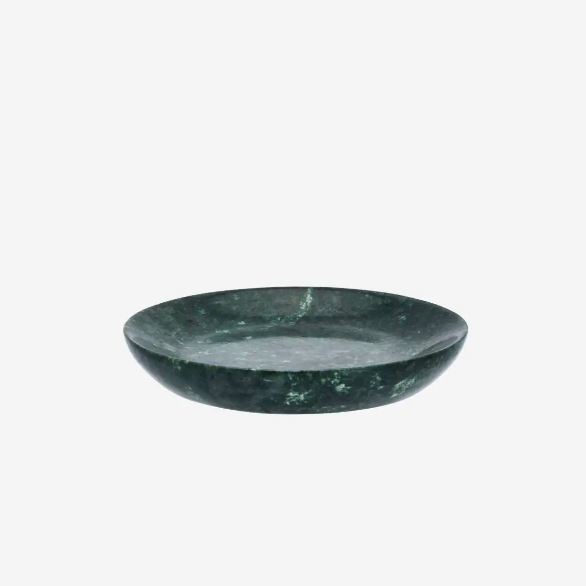Dieses runde Marmortablett aus dunkelgrünem Marmor besticht durch sein zeitloses Design und seine natürliche Schönheit. Es wurde in Indien handgeschnitzt und verleiht jeder Umgebung einen Hauch von Luxus. Ideal für kleine Speisen oder zur Aufbewahrung von Schmuck auf dem Nachttisch.