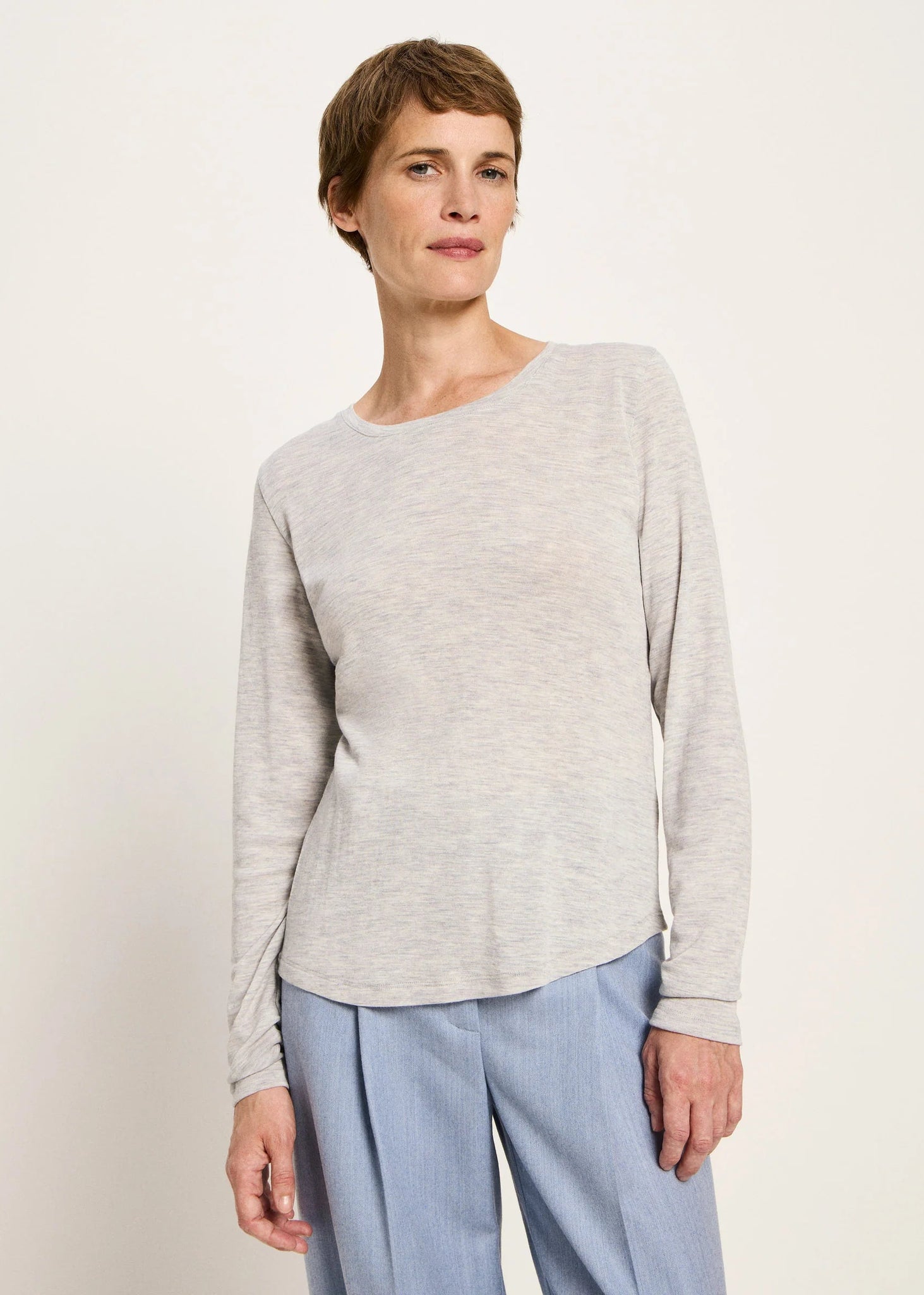Das Langarmshirt aus Bio-Merinowolle überzeugt mit unvergleichlicher Weichheit, Wärme und Tragekomfort. Die hochwertige Bio-Merinowolle ist besonders hautfreundlich und atmungsaktiv, so dass Sie sich den ganzen Tag lang wohl fühlen werden. Der klassische Rundhalsausschnitt ist zeitlos und vielseitig kombinierbar. Die langen Ärmel sorgen an kühleren Tagen für wohlige Wärme.