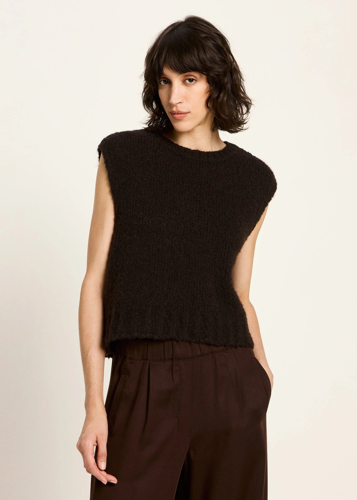 Dieser Pullunder aus hochwertiger Alpaka- und Merinowolle verbindet modernes Design mit weicher Wärme. Die flauschige, wärmende Wollqualität sorgt für ein angenehmes Tragegefühl, der ärmellose Schnitt mit Rundhalsausschnitt lässt sich vielseitig kombinieren – ob über Bluse, Kleid oder Longsleeve. Ein langlebiges Lieblingsstück aus verantwortungsvoller Tierhaltung – für stilvolle Layering-Looks in der kühleren Jahreszeit.