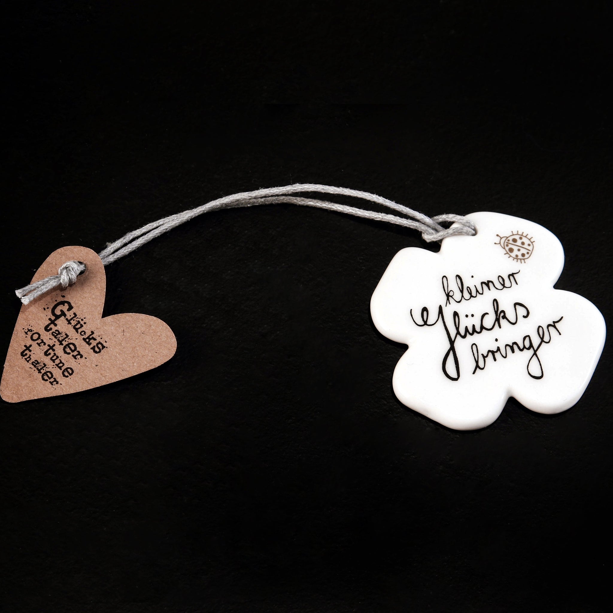 Damit das Glück immer an der Seite der liebsten Menschen bleibt. Ein kleiner Porzellantaler in Kleeblattform, der auf Schritt und Tritt dabei ist oder im Zuhause das Glück einziehen lässt.