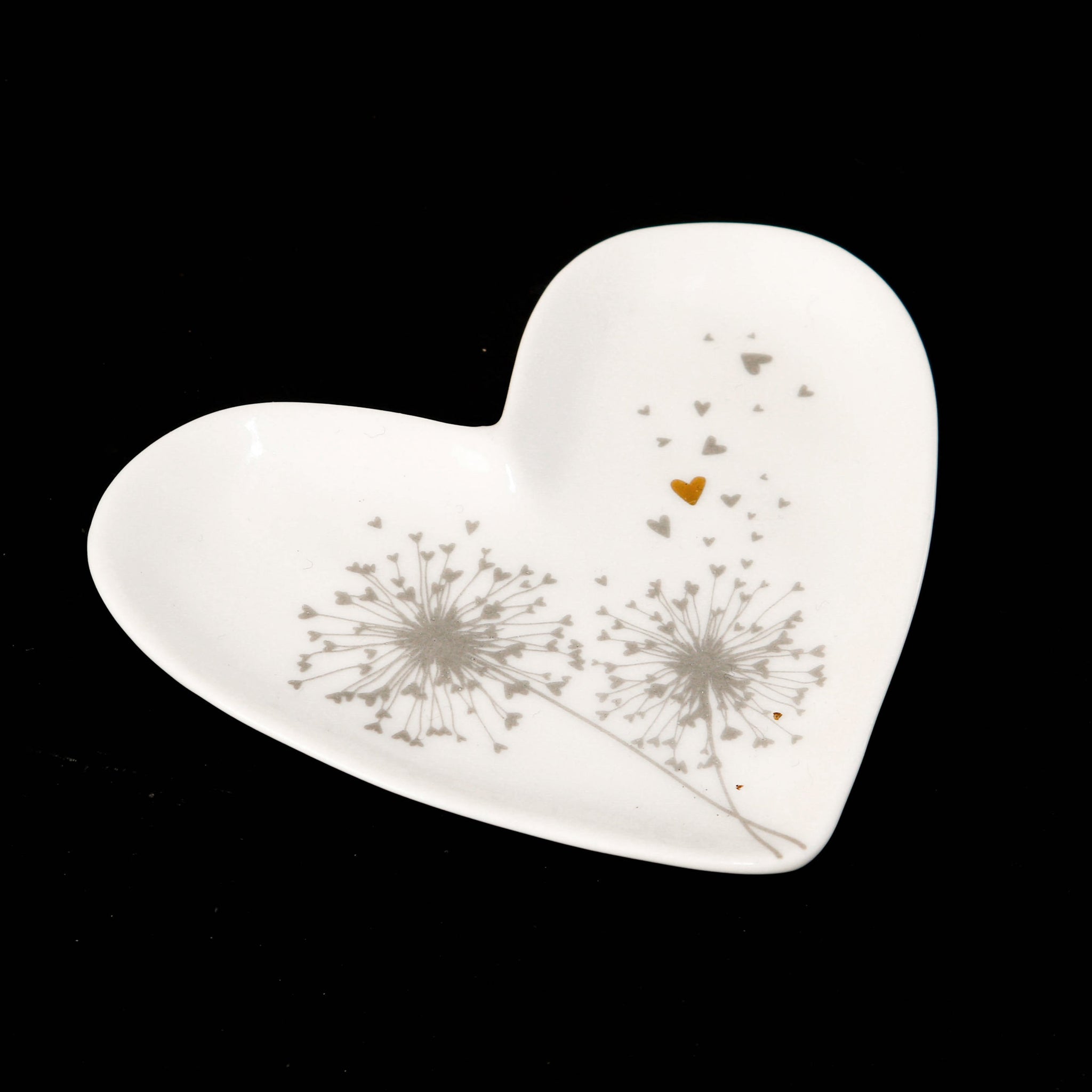 Auf diese kleinen Porzellanteller in Herzform passen nicht nur kleine Appetitanreger, sondern auch Ringe, Schmuck oder andere Kleinigkeiten, die auf den Herztellerchen ihren Platz finden.