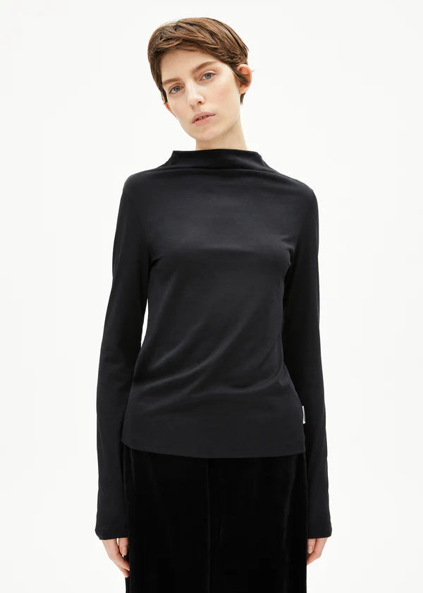 mit angedeutetem Wasserfallausschnitt, langen, schmalen Ärmeln, Allover Zebraprint in gedeckten Cranberry-Tönen und gerader, körperumspielender Silhouette