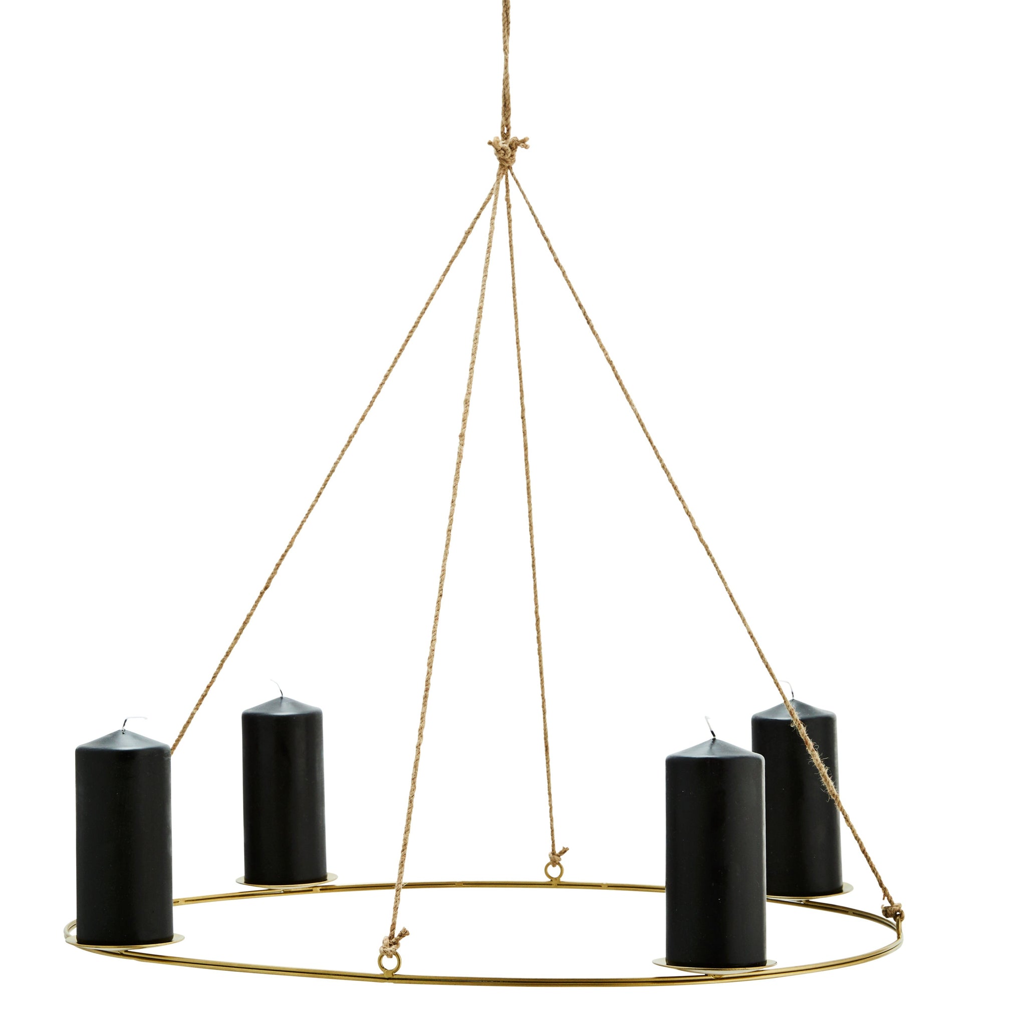 mit Aufhängung aus Jutekordel mit vier Kerzentellern für Stumpenkerzen