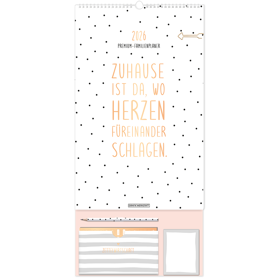 - Feiertage (für D, A und CH), Schulferien (für D und A) mit goldener Pfeil-Klammer inkl. Bleistift, praktische Aufbewahrungstasche für Zettel + Co