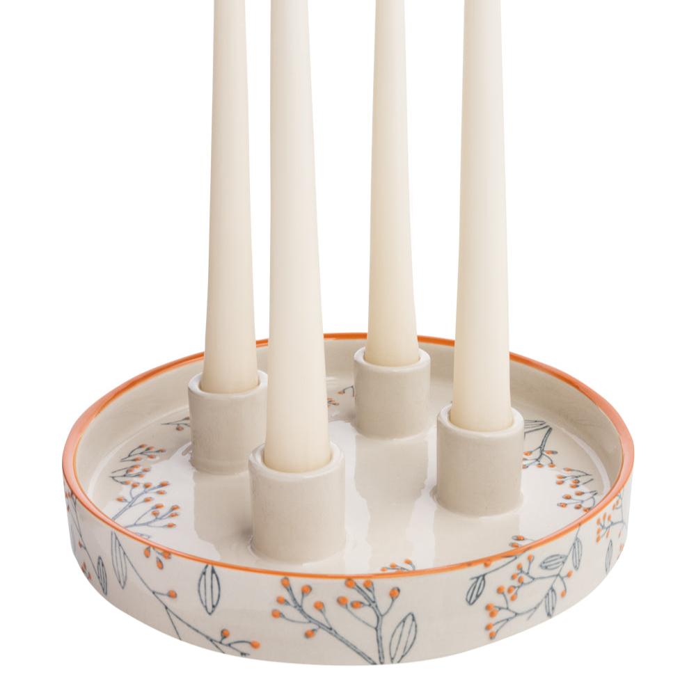 Tauche ein in die romantische Eleganz dieses Kerzenhalters, liebevoll gestaltet für 4 Stabkerzen. Die Oberfläche ist geprägt von filigranen, floralen Mustern, die dem Halter eine zarte und romantische Note verleihen. Jede Kerzenhalterung wurde mit kunstvollen Details versehen, die eine anmutige Atmosphäre schaffen. Dieser Kerzenhalter ist nicht nur ein funktionales Accessoire, sondern auch ein verzauberndes Dekorstück, das die romantische Stimmung in jedem Raum betont. Genieße die sorgfältige Handwerkskunst und schaffe mit diesem Kerzenhalter eine liebevolle und romantische Atmosphäre in deinem Zuhause.