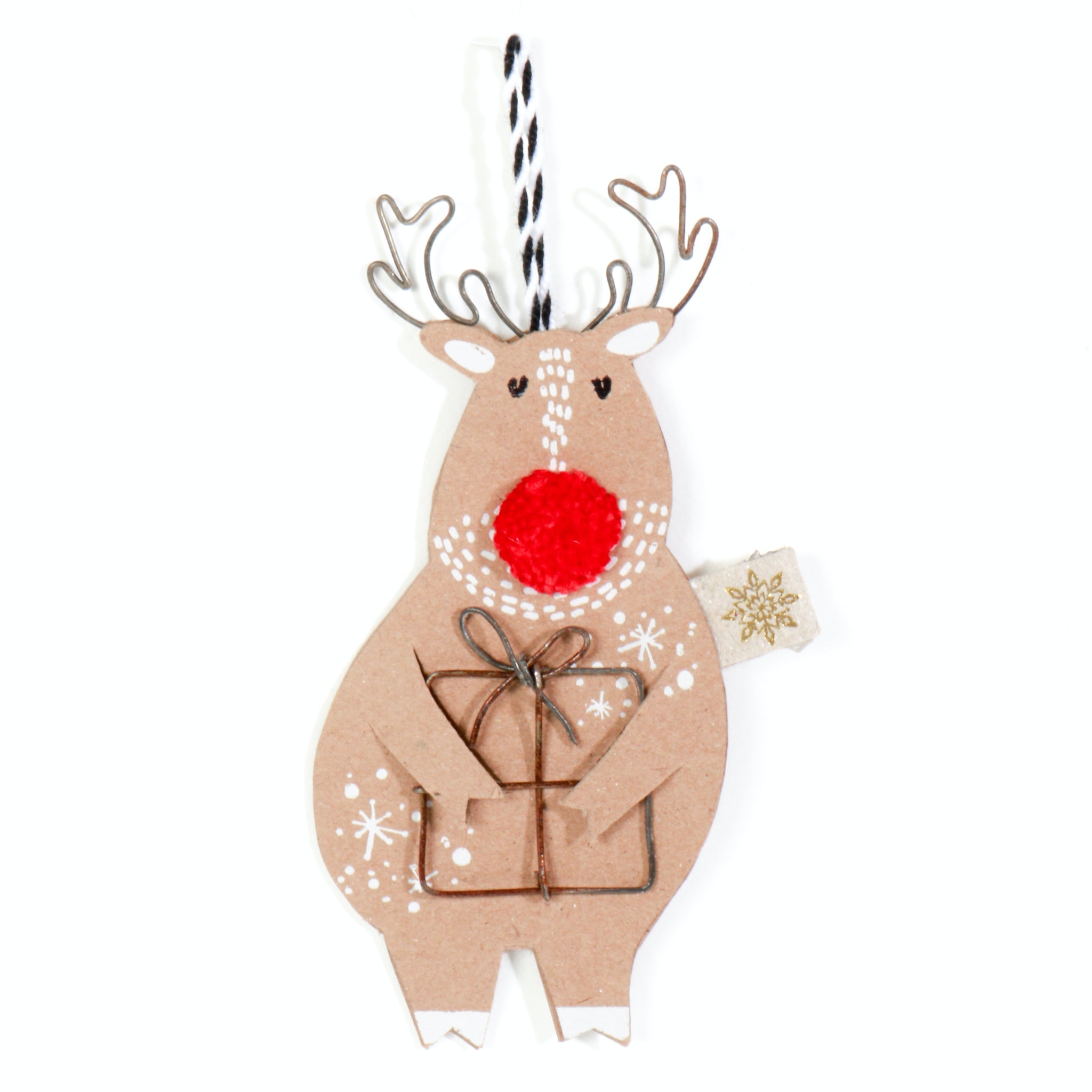 Material: Ornamente aus Pappe mit Heißsiegelung, Draht und Applikationen