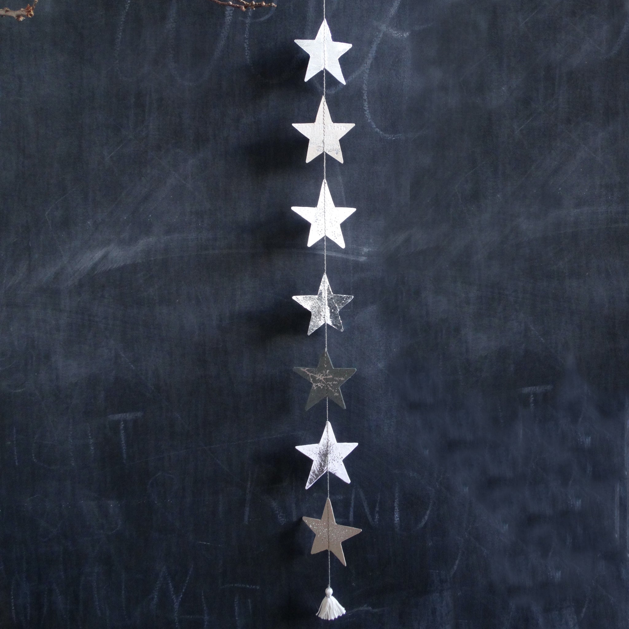 Wer diese wundervollen Ketten dekoriert, greift nach den Sternen. Verschiedene Papiere wechseln sich mit glänzenden Sternen in gold und silber ab und lassen Sternstunden und Winterwunder entstehen.