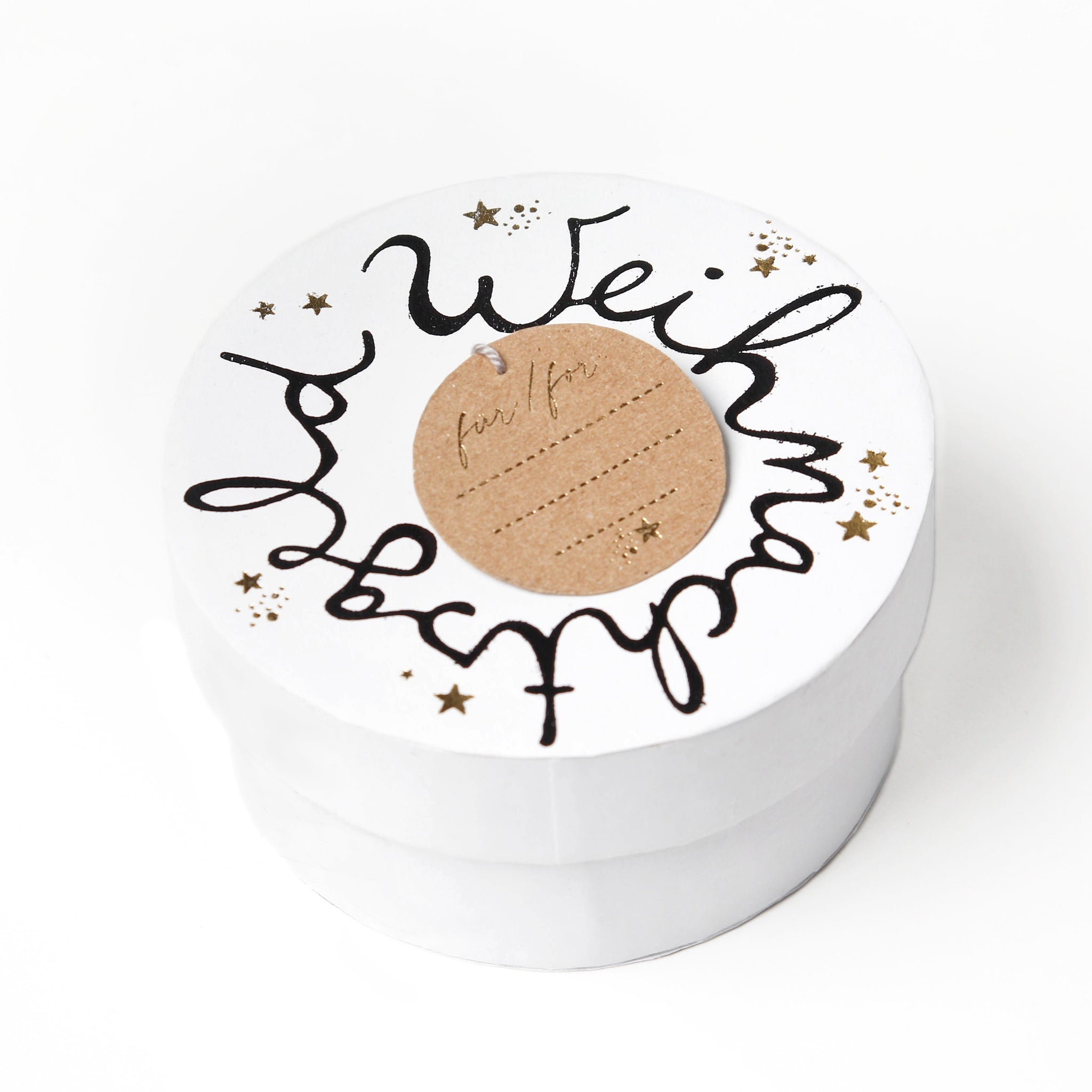 Ein kleines Fest – rund verpackt. Weihnachtsgeld war noch nie so schön verpackt: In dieser liebevoll gestalteten Dose verstecken sich Scheinchen oder Gutscheine stilvoll – gehalten von einer goldenen oder silbernen Klammer und begleitet von festlichem Konfetti. Ob als kleines Extra unter dem Baum oder für Herzenswünsche.